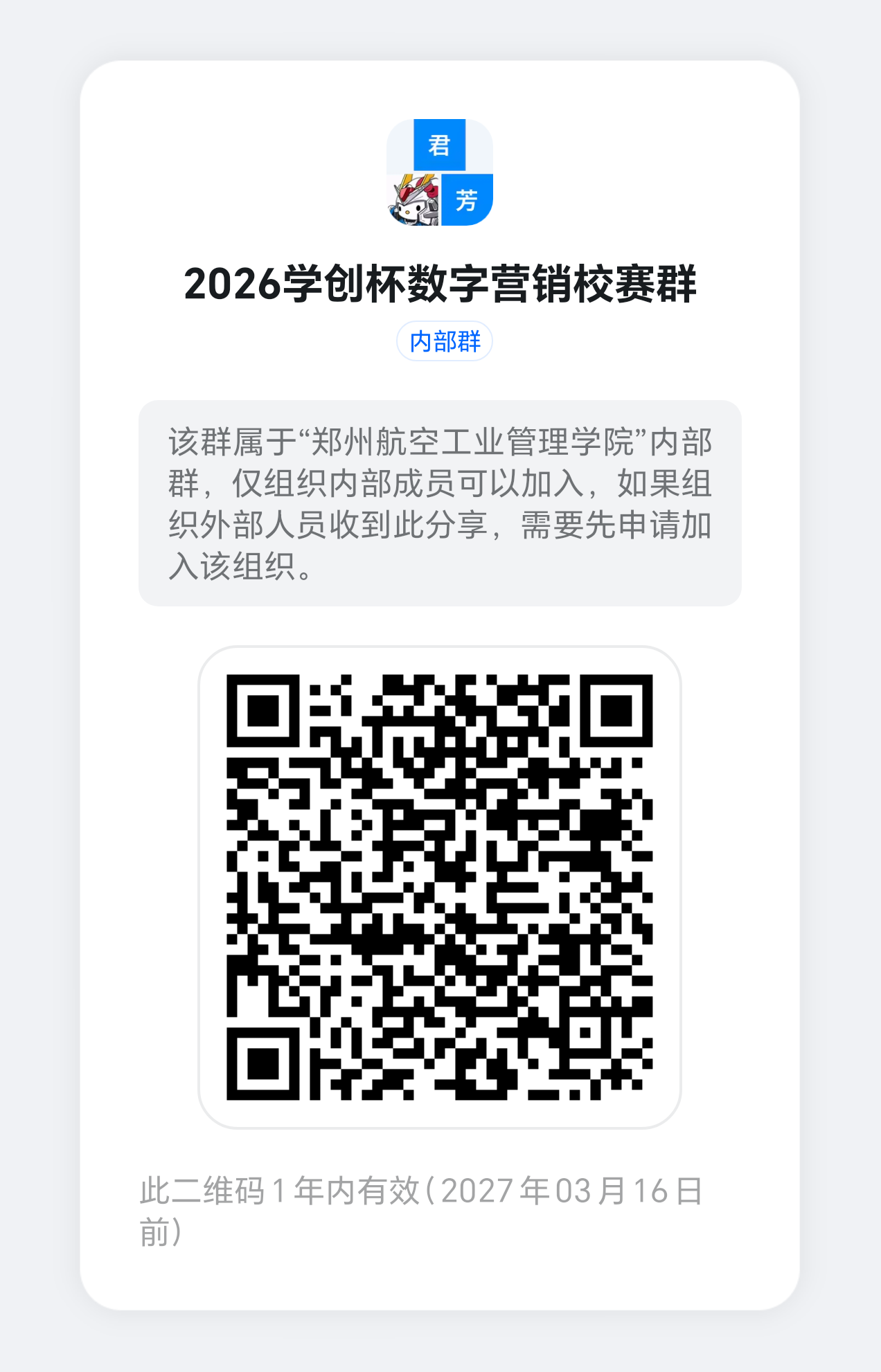 由高等学校国家级实验教学示范中心联席会经济与管理学科组与中国陶行知研究会决定举办第十一届“学创杯”全国大学生创业综合模拟演训活动。活动为中国高等教育学会《全国普通高校大学生竞赛排行榜》竞赛项目之一。为选拔优秀团队代表学校参加2026年“学创杯”全国大学生数字营销模拟大赛,大赛组委会决定举办2026年“学创杯”全国大学生数字营销模拟大赛郑州航空工业管理学院校赛。现将2026年“学创杯”全国大学生数字营销模拟大赛有关事项通知如下: