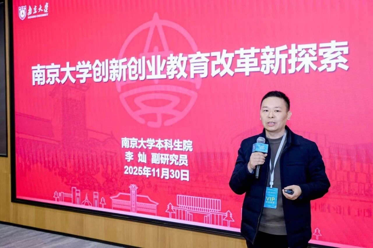 南京大学本科生院实践教育中心科长李灿回顾了南京大学“543”双创教育体系的演进与升级,强调在人工智能时代背景下,推动双创教育与专业教育、科研平台、社会资源的深度融合,培养敢闯会创的拔尖人才。